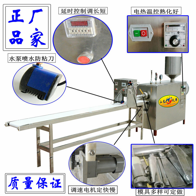 成套年糕機(jī)為機(jī)電一體化設(shè)計(jì),由年糕熟化成型機(jī)和皮帶輸送數(shù)控切斷機(jī)組成,操作簡單,生產(chǎn)效率高,它采用電熱溫控水浴煮漿新工藝,以米漿為原料加工年糕,自動熟化,自動揉壓勻質(zhì),自動成型,生產(chǎn)的年糕熟化徹底,外表光滑亮澤,口感筋道細(xì)膩,大小均勻,產(chǎn)品形狀可根據(jù)用戶要求,定制各種模具。