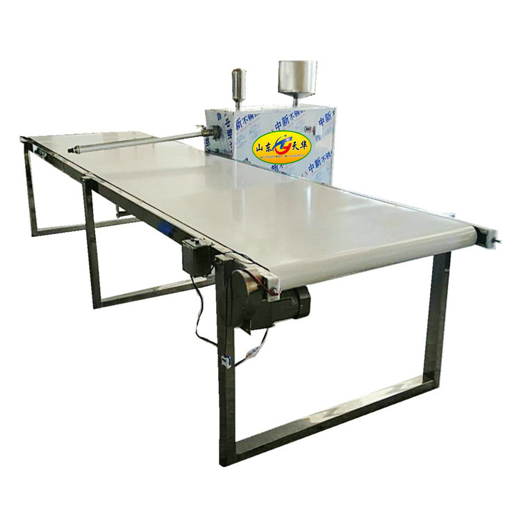 天華燙皮機結(jié)構(gòu)緊湊,性能穩(wěn)定,由電熱水浴蒸煮箱、智能溫控裝置、螺旋推進裝置和成型模頭組成,采用電熱水煮自動控溫裝置,采用儀表控溫裝置,拋棄經(jīng)驗控溫的笨方法,操作簡便,只需將米漿倒入機器,即可生產(chǎn)出薄筋光亮、滑溜爽口、民間風(fēng)味的燙皮。天華燙皮機功能多,還可涼皮、東北大拉皮、涼粉、涼蝦、米豆腐、年糕、粉條、粉絲等產(chǎn)品。